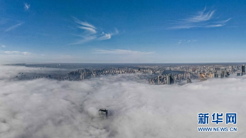 建筑物被籠罩在濃霧之中,若隱若現。新華網 夏銘陽 攝