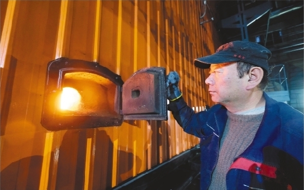 圖為沈陽環城供熱有限公司工作人員在監測供熱鍋爐。(鄭磊 攝)