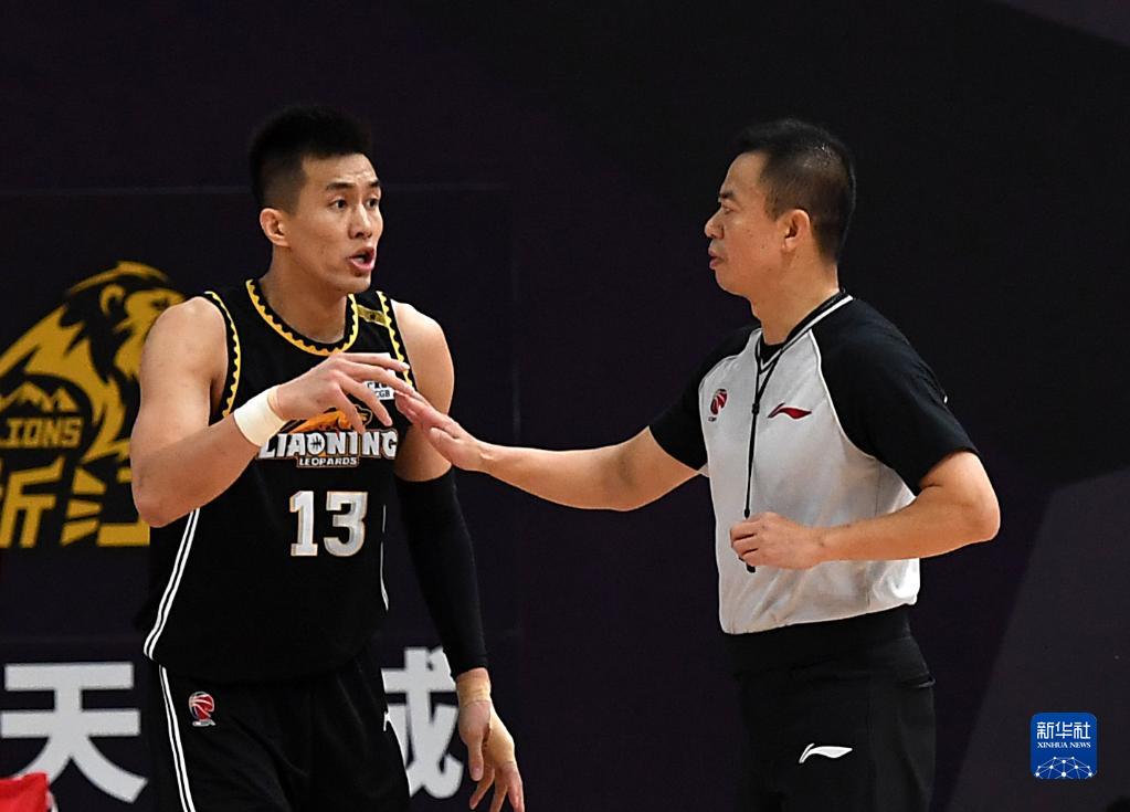 10月31日,遼寧本鋼隊球員郭艾倫(左)在比賽中與裁判交流。新華社記者 李安 攝