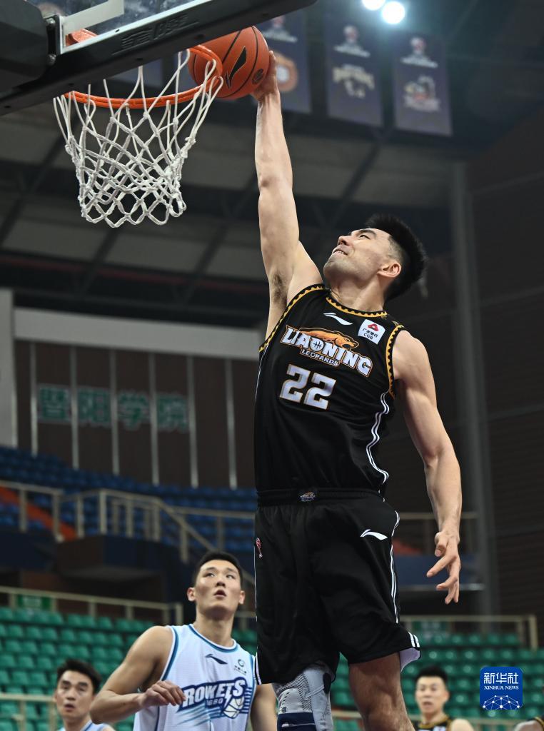 11月2日,遼寧本鋼隊球員李曉旭在比賽中扣籃。新華社記者 陳欣波 攝