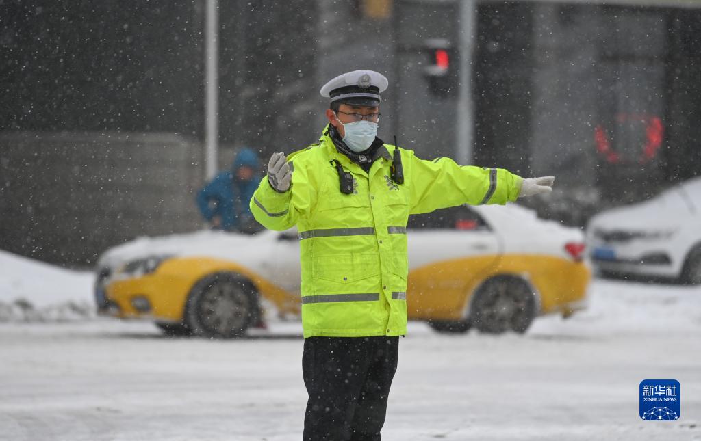 11月8日,在沈陽市沈河區,交警在指揮交通。新華社記者 蔡湘鑫 攝
