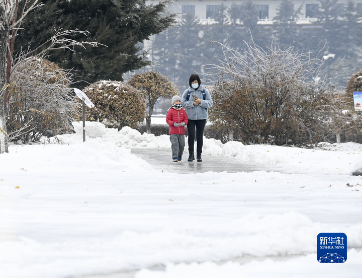 2021年11月8日,吉林省出現雨雪冰凍天氣,市民在長春街頭行走。 新華社記者 顏麟蘊 攝