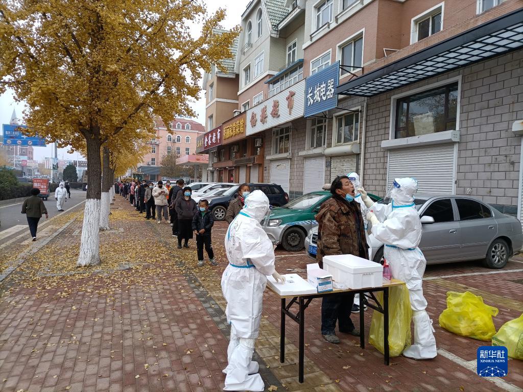 11月6日,莊河居民在街頭進行核酸檢測。新華社記者 蔡擁軍 攝