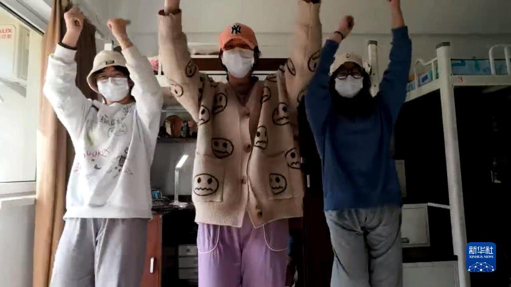 莊河大學城內的學生在寢室內跳健身舞。(視頻截圖)