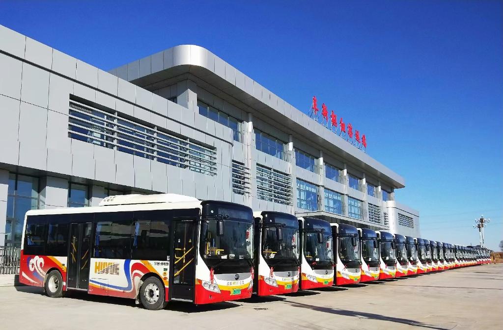 圖為??吭诟沸聵屑~客運站的新能源公交車。(阜新市委宣傳部供圖)