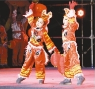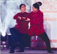由朝陽縣非遺傳習所和北四家子鄉社火傳習所傳承人聯袂表演的《霸王鞭》,令觀眾大開眼界。6歲到14歲的孩子組成16人演出隊伍,主鼓、面鼓聲韻鏗鏘……霸王鞭表演粗獷豪邁、輕盈靈動,再現了西楚霸王征戰前豪情萬丈的練兵場面。虞姬舞劍驚艷亮相,編導為了舞臺效果,將虞姬手中的劍用雉雞翎子代替,舞姿曼妙唯美、剛柔相濟。這個節目是以國家級非遺項目《霸王鞭》為依據,在傳承的基礎上大膽創新。而說唱表演《說唱臉譜》說的是京劇藝術。