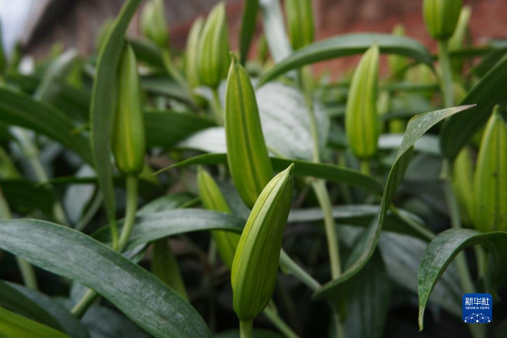 1月18日,東五官村的花卉大棚內含苞待放的百合花。新華社記者 武江民 攝