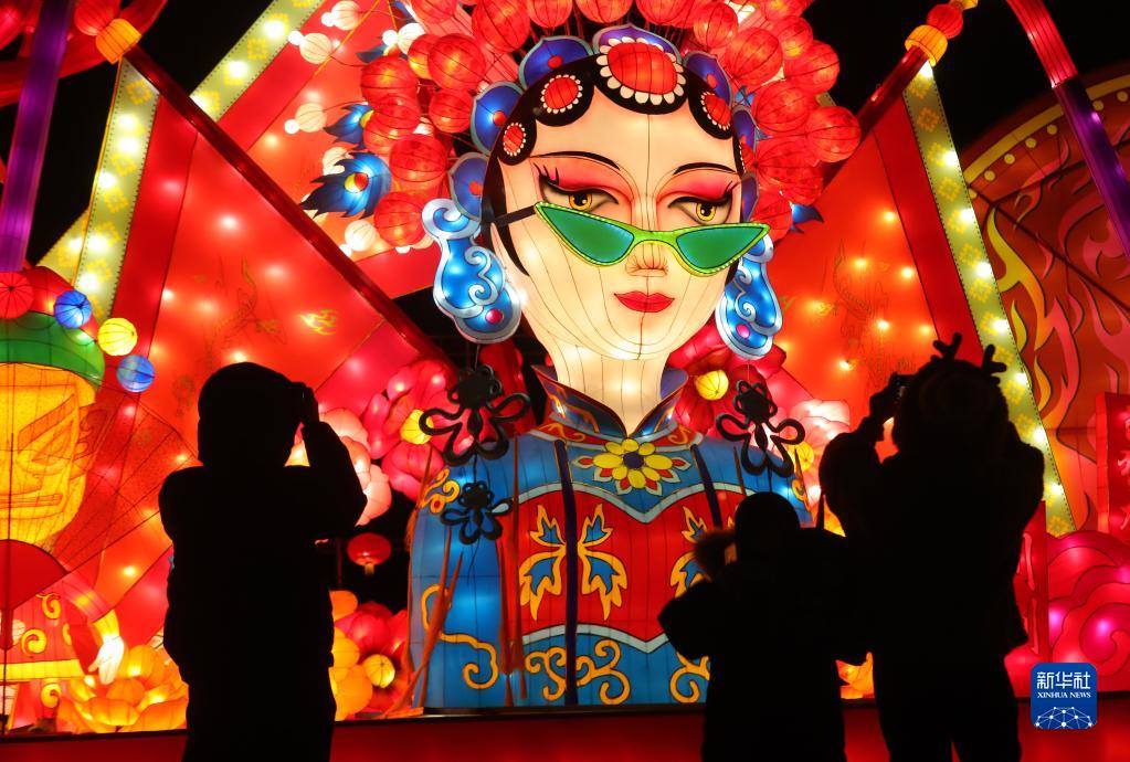 2月2日,市民在迎春燈會上拍照。新華社記者 楊青 攝