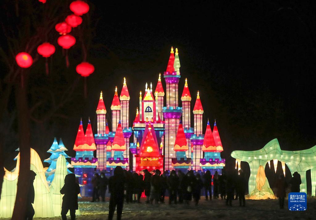 春節期間,2022中國沈陽迎春燈會吸引眾多市民參觀。