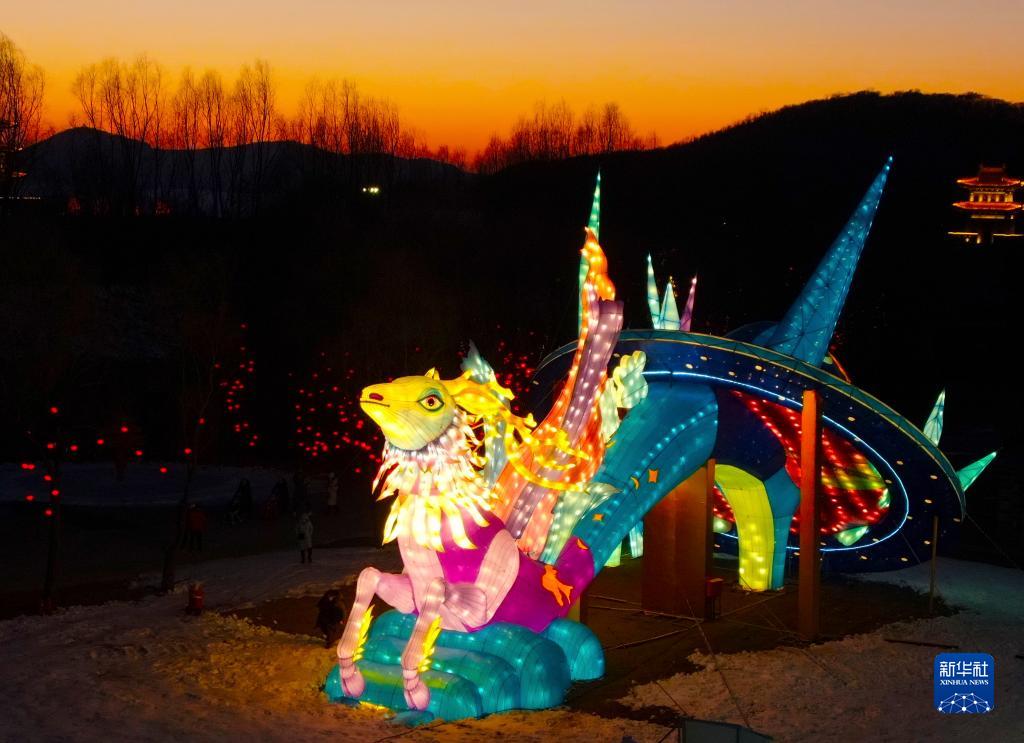 2月2日拍攝的2022中國沈陽迎春燈會上的花燈(無人機照片)。新華社記者 楊青 攝