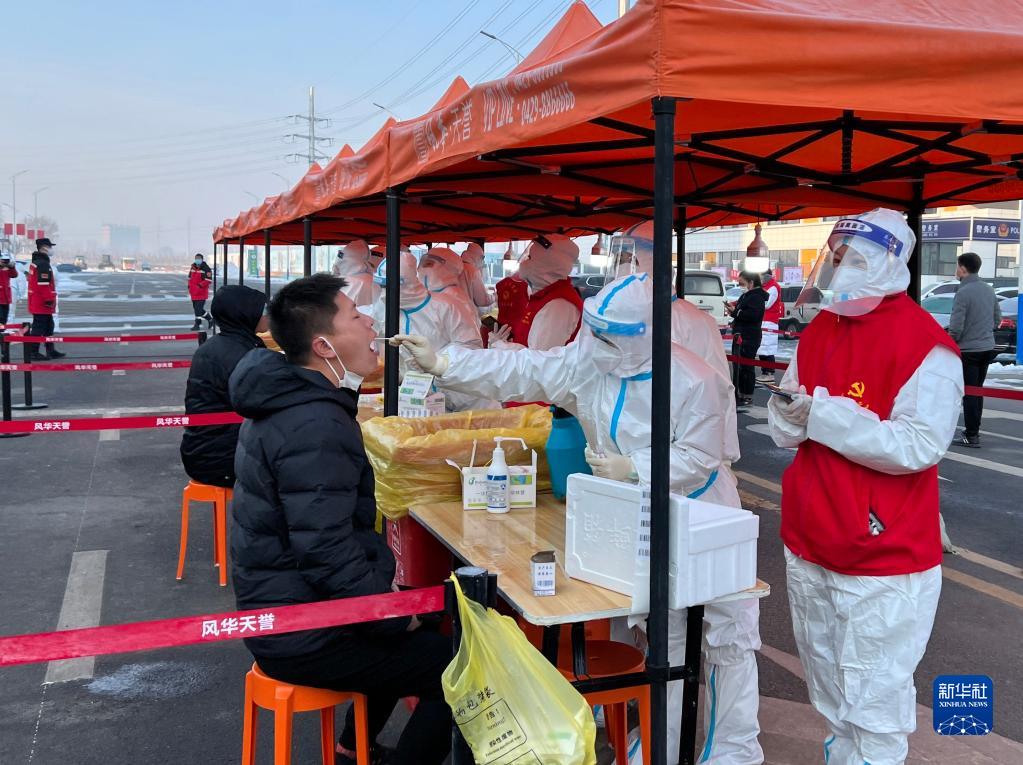 2月11日,在綏中縣綏中鎮風華里小區,居民在進行核酸檢測采樣。