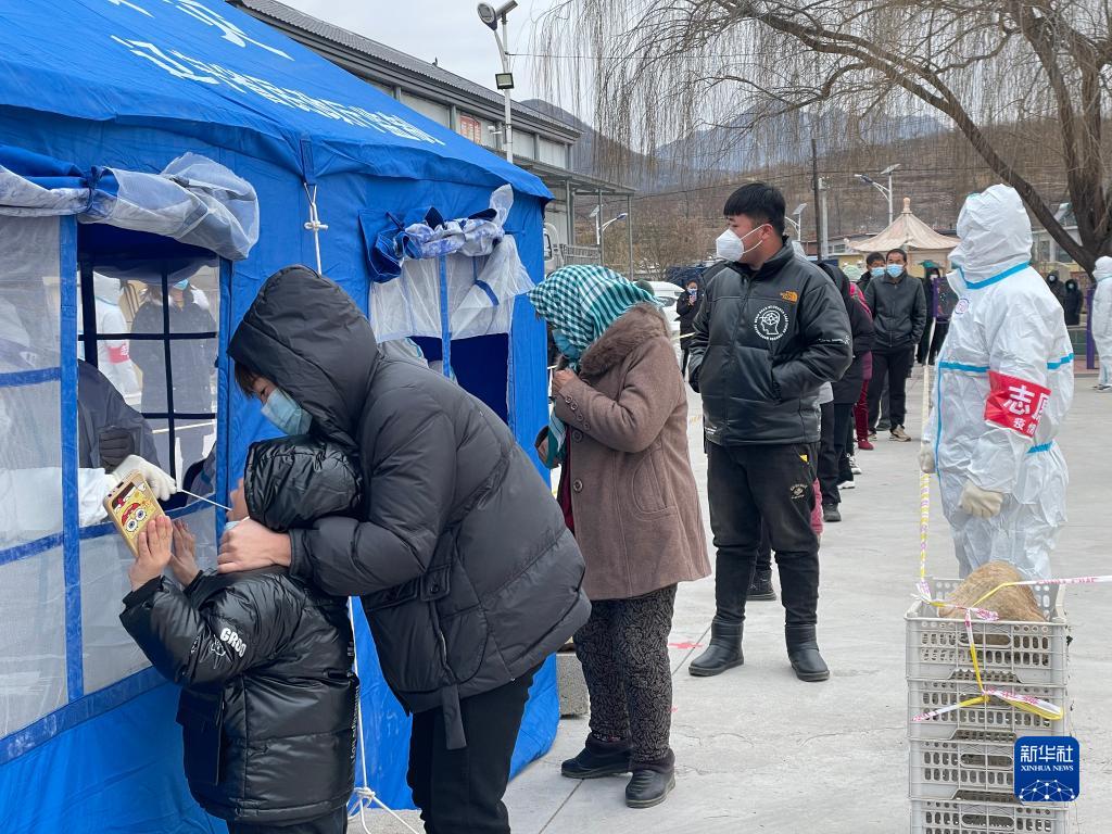 2月12日,在綏中縣秋子溝鄉腰嶺子村,居民參加核酸檢測采樣。新華社記者 李昂 攝