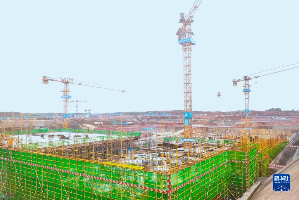 2月14日,長沙機場改擴建工程綜合交通樞紐工程項目建設現場。(中建五局供圖)