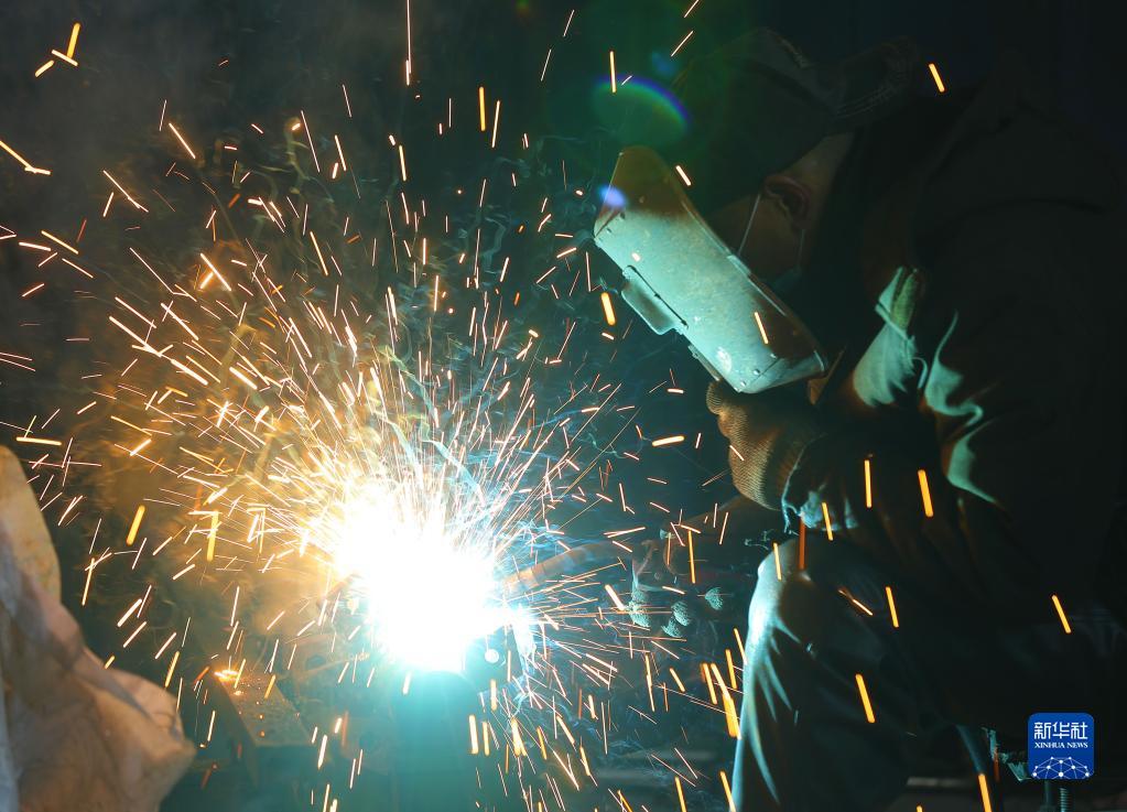 2月23日,在鐵嶺縣鐵嶺壟上行機械有限公司,工人在焊接旋耕機零部件。新華社記者 楊青 攝