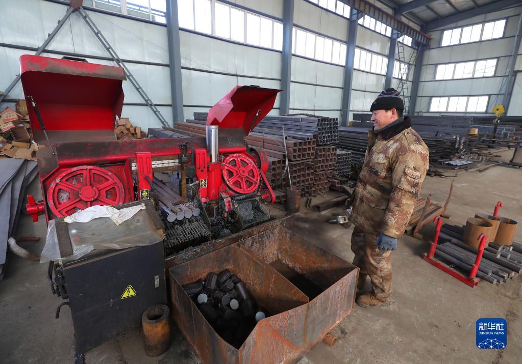 2月23日,在鐵嶺縣鐵嶺壟上行機械有限公司,工人在加工旋耕機零部件。新華社記者 楊青 攝