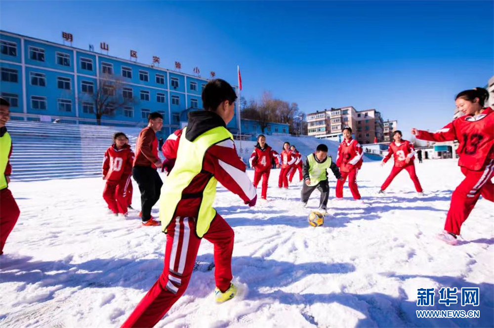 圖為本溪市明山區實驗小學開展的雪地足球賽。新華網發
