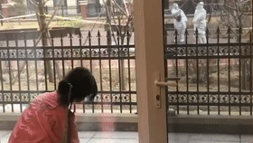 暖心又可愛!“大白”與隔離區女孩隔窗猜拳