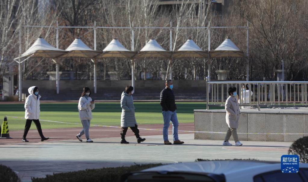 3月19日,在沈陽市和平區126中學長白島校區核酸檢測點,市民有序排隊等待檢測。新華社記者 楊青 攝