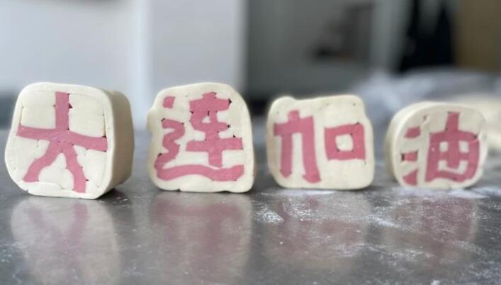 女手藝人耗時4小時 制作“大連加油”字樣插圖花餑餑