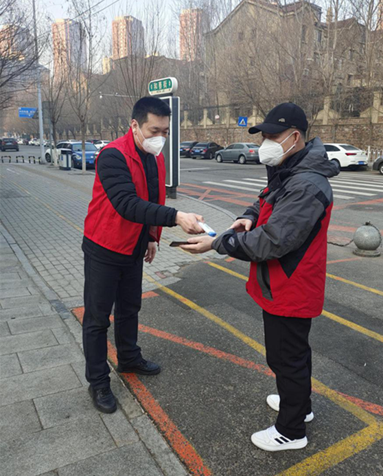 據劉明介紹,人大疫情防控先鋒隊隊員們的主要工作是在防疫卡點執勤,對過往車輛和人員逐一進行信息登記,并測量體溫、查看健康碼、行程卡及核酸檢測證明,詢問和登記外來人員,堅決做到不漏一車、不漏一人?!拔覀兠刻煸?點到崗,在小區出入卡點測溫、登記,配合社區工作人員做好各項防控工作?!?/p>