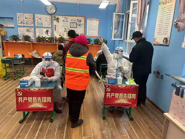 新華網沈陽3月22日電(關溪涓 趙健彤)“您好,給您測體溫,請出示健康碼、核酸檢測證明……”在沈陽市和平區職工新村家園小區出入卡點,沈陽市人大常委會綜合新聞處一級主任科員劉明正在值守。連日來,像他這樣服務在基層一線的黨員干部,在沈陽市各個防疫卡點還有很多。
