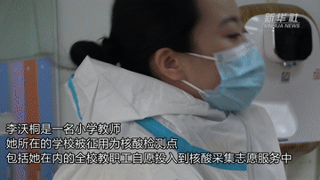 李沃桐是一名小學教師,她所在的學校被征用為核酸檢測點,包括她在內的全校教職工自愿投入到核酸采集志愿服務中,每次都要提前近一小時到崗,進行各種防護處理,每天兩班倒服務周邊小區居民。