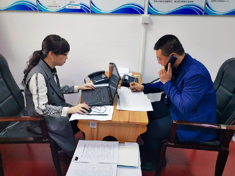 工作人員在接聽熱線、記錄情況。(受訪者供圖)