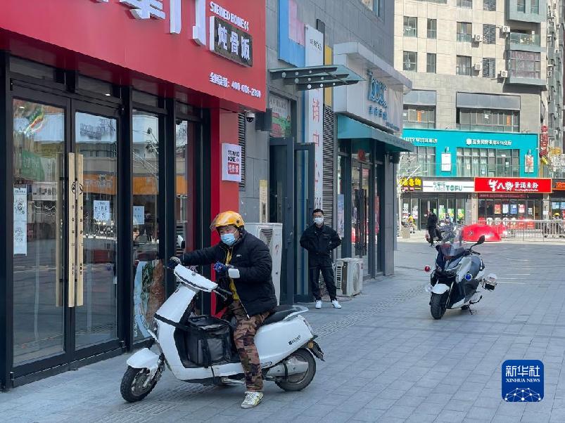 3月31日,沈陽市的外賣員在取送餐飲訂單(手機照片)。