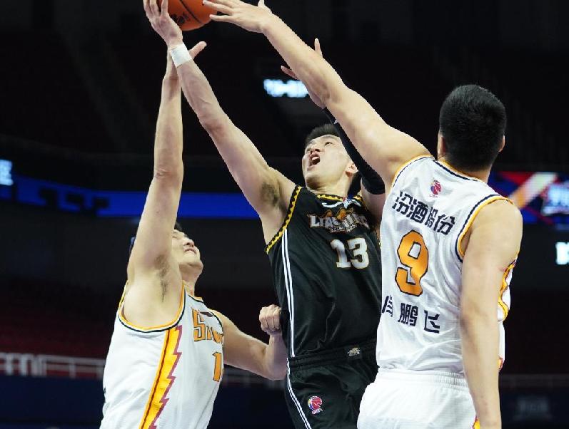 4月9日,遼寧隊球員郭艾倫(中)在比賽中進攻。新華社記者胡晨歡攝