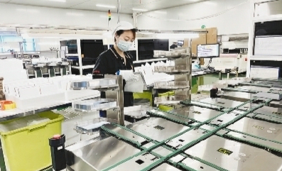錦州陽光能源有限公司工人正在整理硅片。崔治 攝