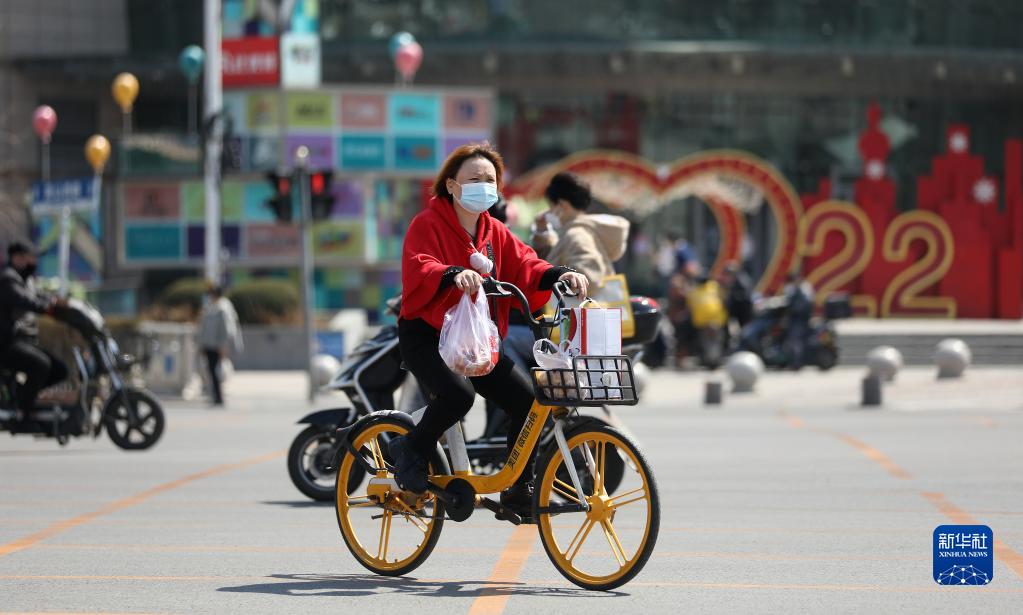 4月13日,市民在沈陽街頭騎共享單車出行。新華社記者 姚劍鋒 攝