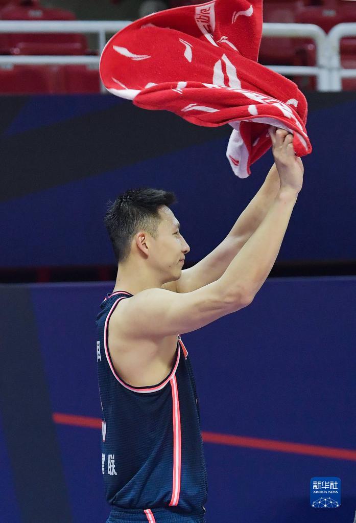 4月14日,廣東東莞大益隊球員易建聯(左二)在場邊慶祝隊友得分。新華社記者 彭昭之 攝