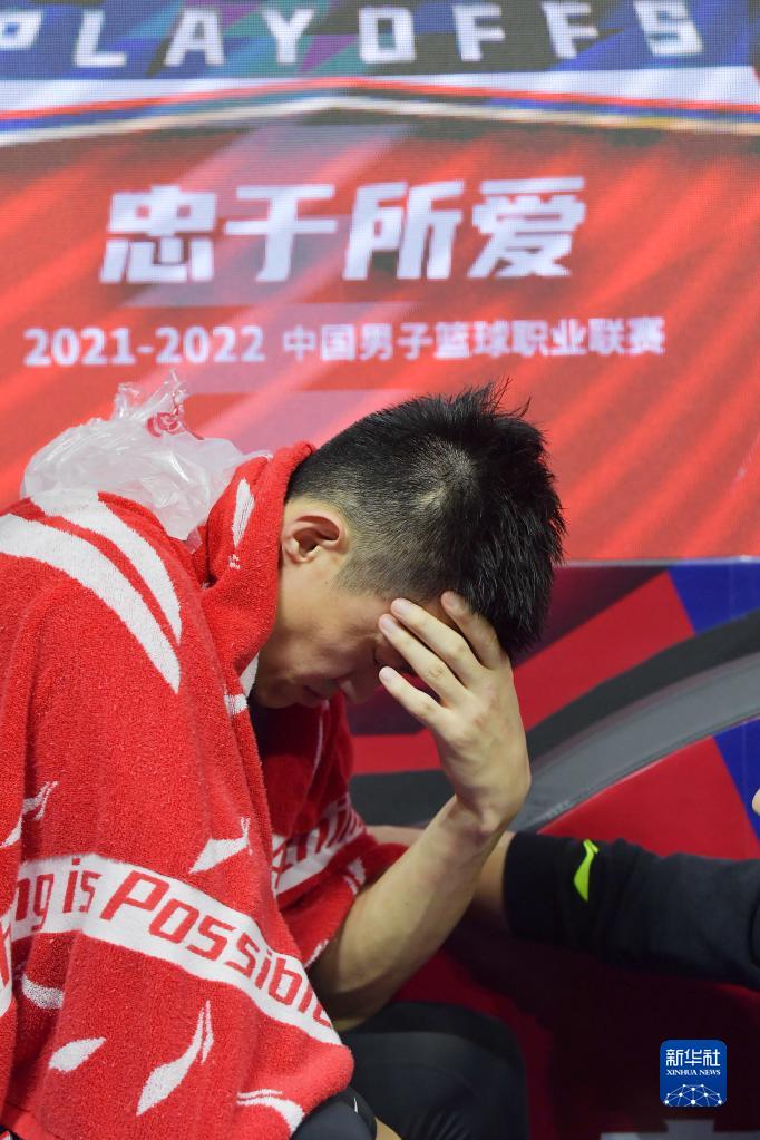 4月14日,廣東東莞大益隊球員周鵬因傷在場下休息。新華社記者 彭昭之 攝