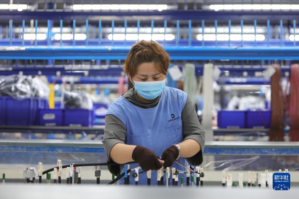 4月19日,德科斯米爾(鞍山)線束系統有限公司的工人在車間內生產汽車線束。新華社記者 王乙杰 攝