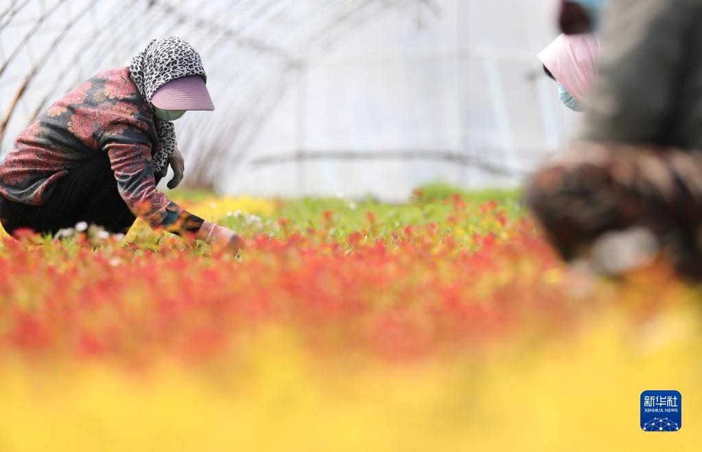 復工復產以來,臺安縣八角臺街道花圃內處處是花農們忙碌的身影。