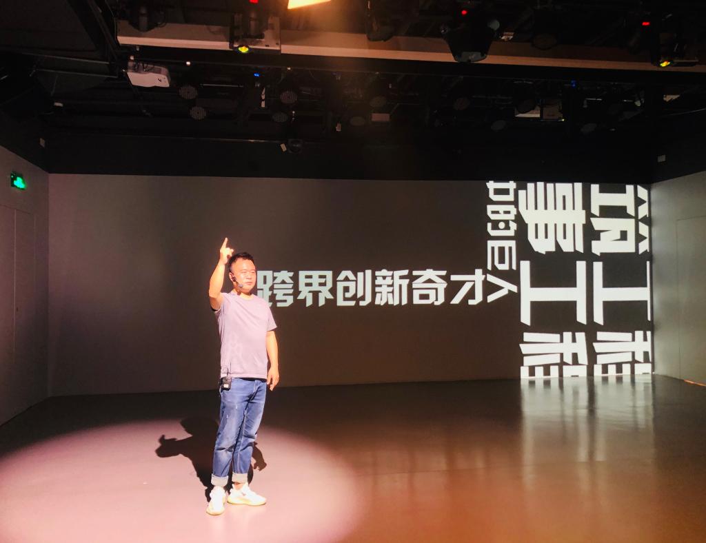 閱讀推廣人吳河圖在沉浸式光影讀書會上為聽眾講《達·芬奇傳》。受訪者供圖