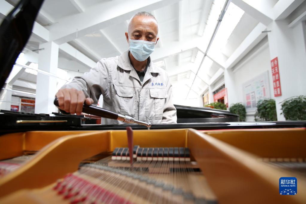 4月25日,一名調音師在車間內為鋼琴調音。新華社記者 王乙杰 攝