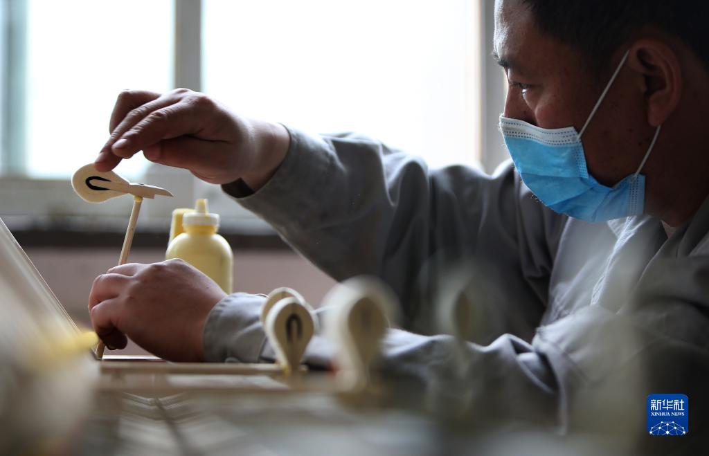 4月28日,劉玉磊在車間內組裝鋼琴部件。新華社記者 王乙杰 攝