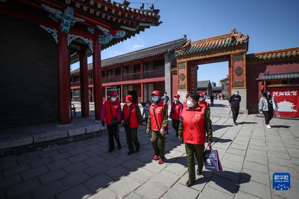 5月1日,曾奮戰在社區防疫一線的志愿者在沈陽故宮博物院內參觀。新華社記者 潘昱龍 攝