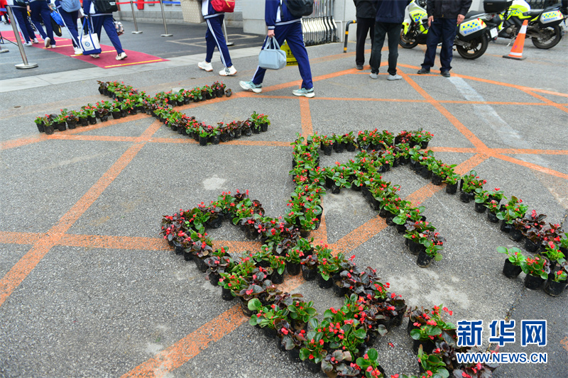 為歡迎學生返校復課,沈陽市第七中學用花卉擺出“七盼”。 新華網發