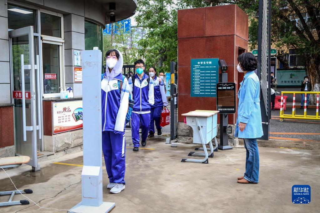 5月6日,沈陽市鐵路實驗中學的學生在校門口測溫后進入校園。由于疫情原因,3月14日,沈陽市中小學暫停線下教學活動,改為線上教學。近期沈陽市疫情防控形勢持續向好,按照科學精準防控和分批有序返校復學的原則,5月6日起,沈陽市普通高中三年級、初中三年級恢復線下教學。新華社發