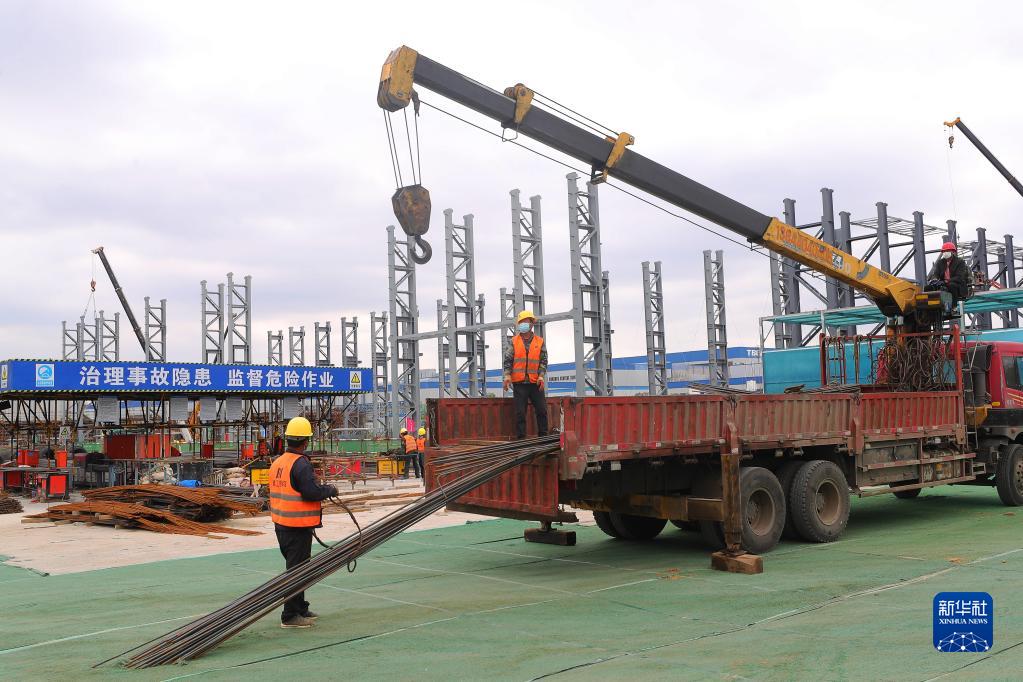5月11日,工人在沈陽市鐵西區特變電工沈陽變壓器集團有限公司特高壓套管研發制造基地建設現場施工。新華社記者 楊青 攝
