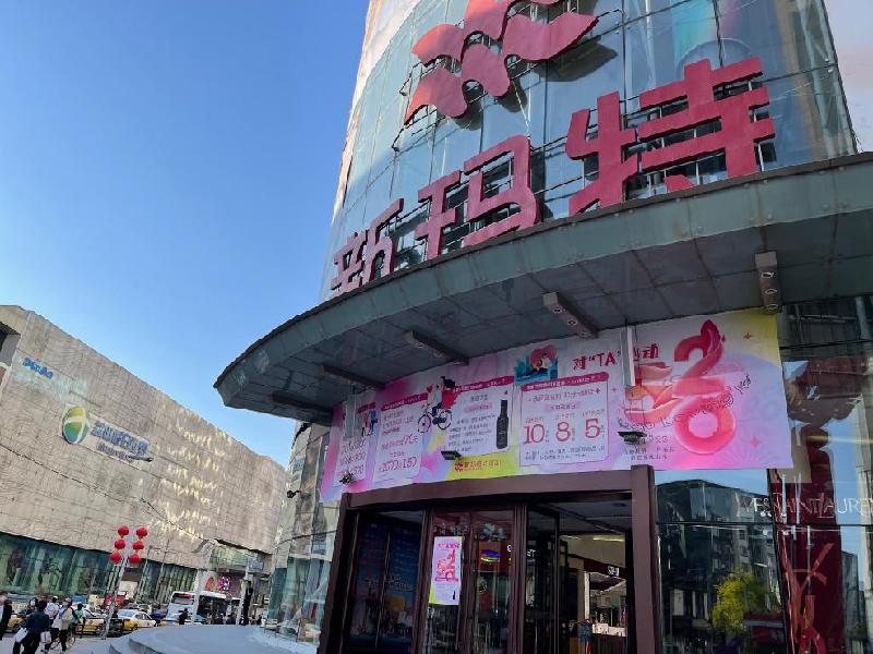 沈陽中街新瑪特門口貼著“520”促銷海報。 新華社記者于也童 攝