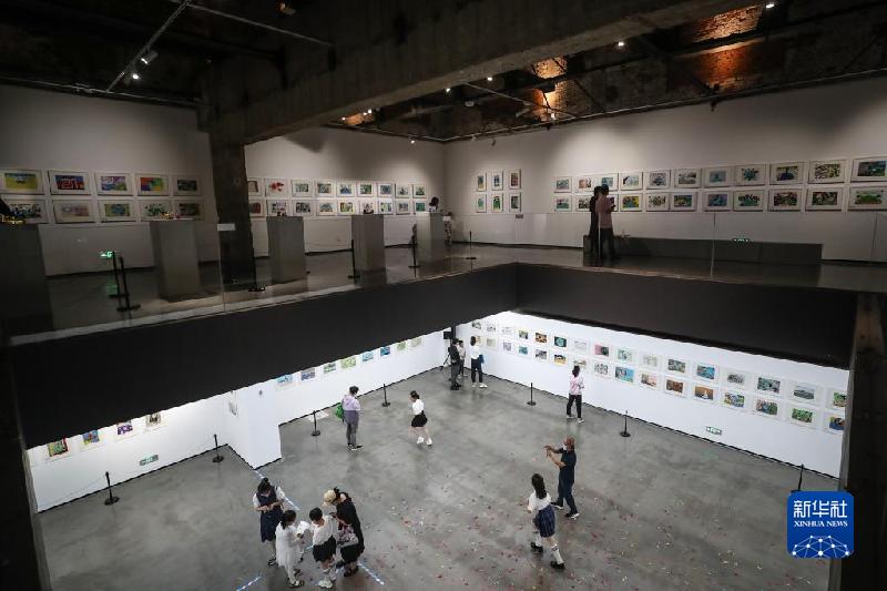 6月5日,市民在鋼美術館觀看兒童畫國際巡展。當日是世界環境日,“放飛綠色夢想 保護地球未來”兒童畫國際巡展(鞍山展)在鞍山鋼美術館拉開序幕。孩子們以畫為媒,共述熱愛地球母親、與自然和諧共生、建設美好家園之情。新華社記者 潘昱龍 攝