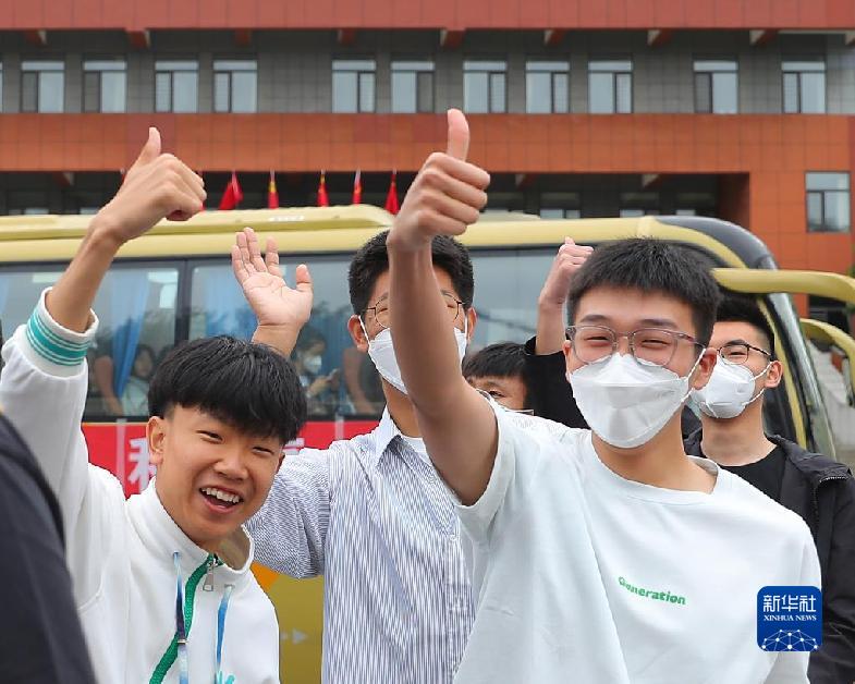 6月7日,遼寧沈陽市廣全學??忌鸀樽约杭佑?。當日,2022年全國高考拉開帷幕。新華社記者 楊青 攝