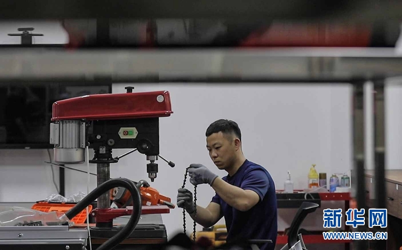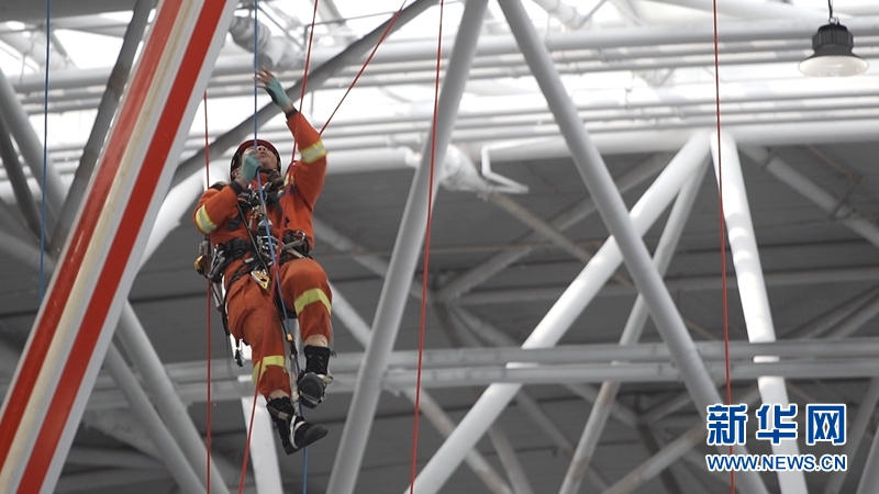 石曉東在設備室內檢修消防設備。新華網 夏銘陽 攝