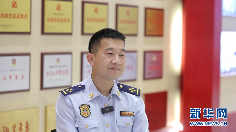 啟工消防救援站隊政治指導員張巖在隊史館講解隊史。新華網 夏銘陽 攝