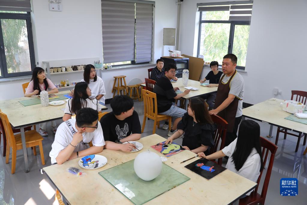 6月16日,在撫順大官窯陶瓷工作室,老師給學生們講解陶瓷繪畫技藝。新華社記者 楊青 攝