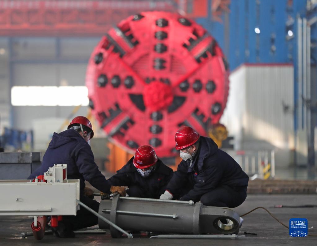 2020年2月10日,工人在北方重工盾構機分廠車間工作。新華社記者楊青攝
