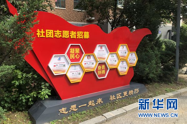 河畔社區志愿者招募文化墻。新華網趙健彤攝